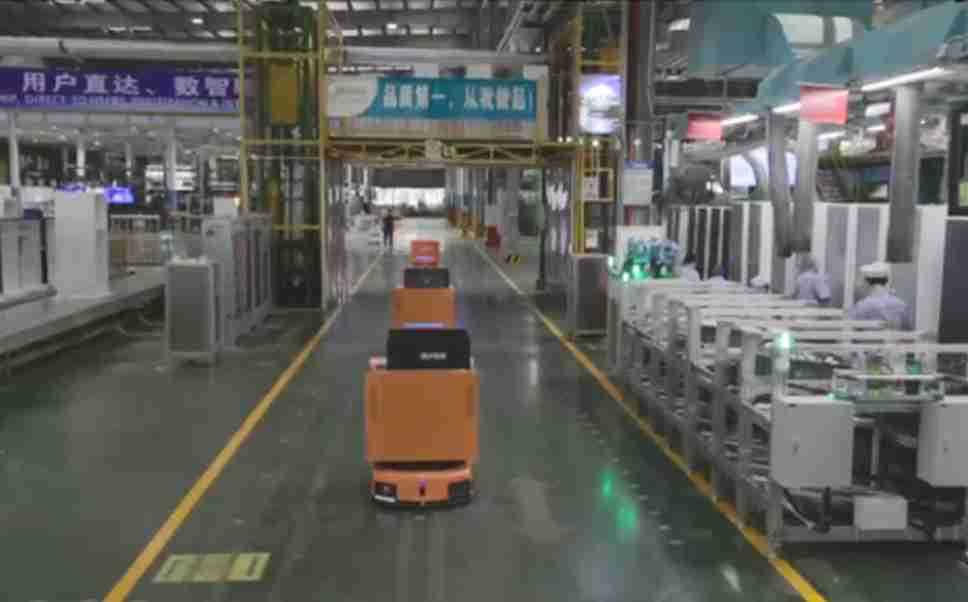 为车载冰箱物流配送打造的智能解决方案,,,包含产中物流通过潜伏举升AMR搬运至线边,,,,产后成品物流智能仓储,,,流程包含产中物流智能齐套入库,,,,线边安灯叫料AMR智能配送至线边,,,成品入库、、、出库,,通过无人堆高车机器人,,,,智能仓储管理替代人工作业管理,,,实现更高存储、、、、更高效率、、、、更具柔性化的解决方案。。。。